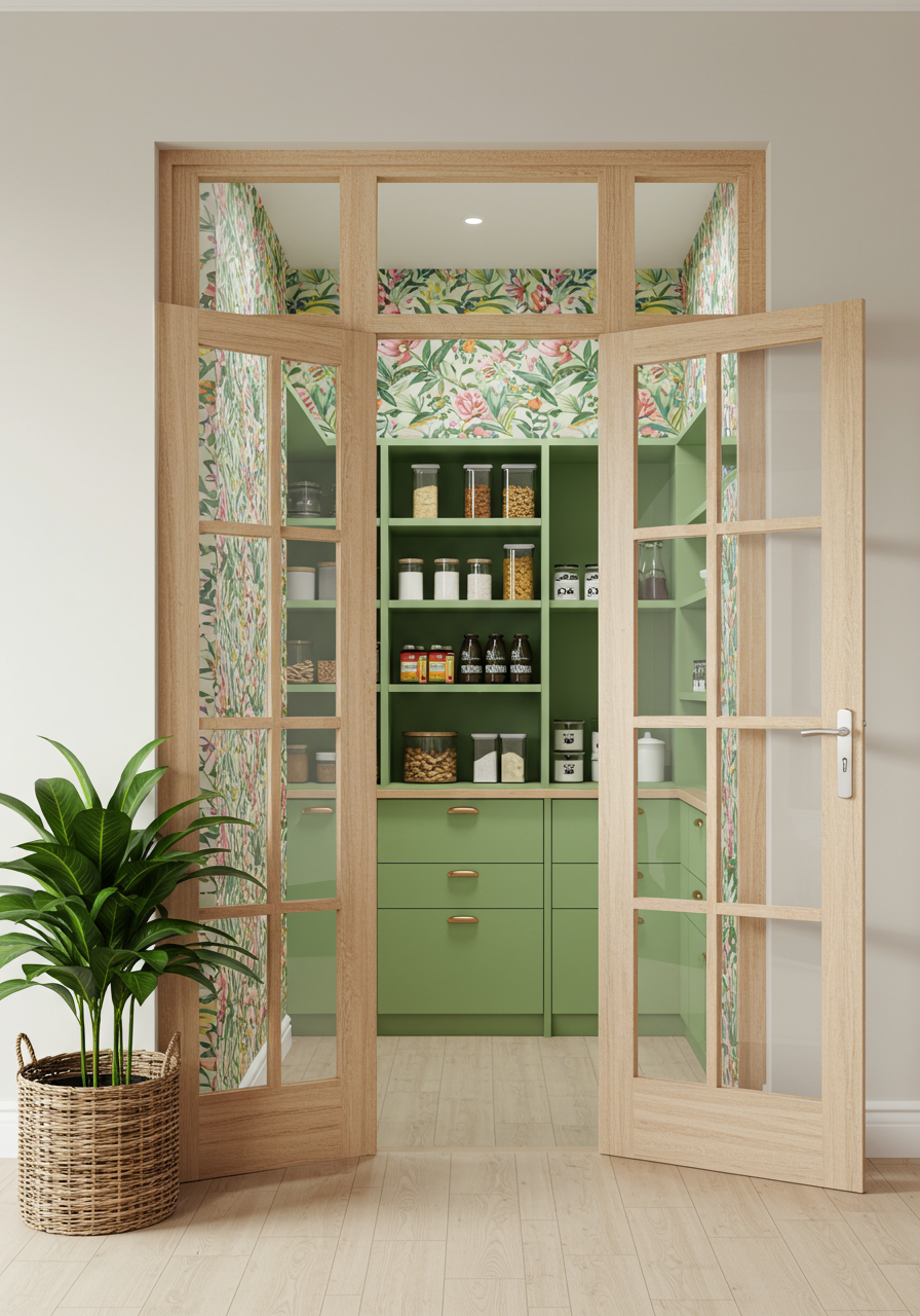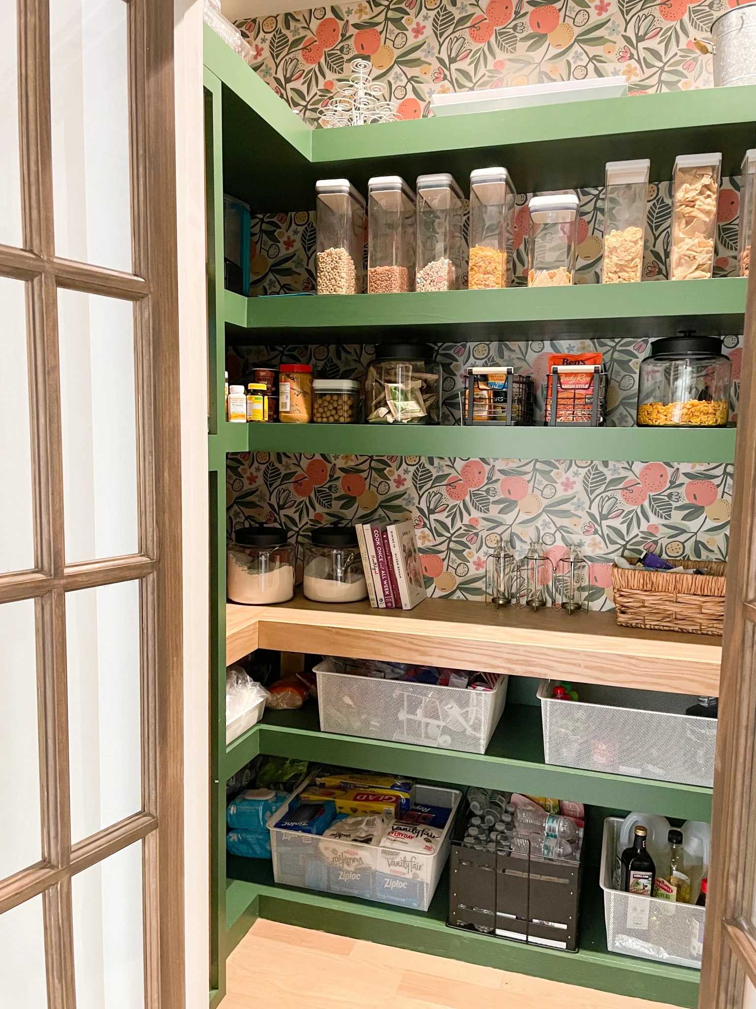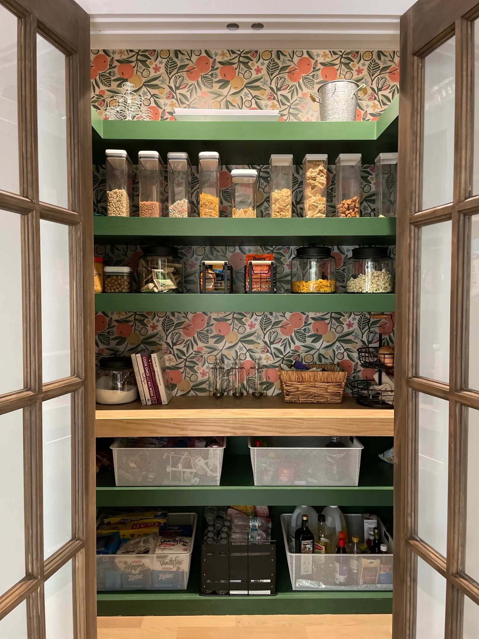 If you come over to my house and can’t find me, I’m probably hanging out in my pantry. It was at the top of our list to have one, having had NO main-level storage space in our previous homes, and I am so in love with this fun design that we ended up with.